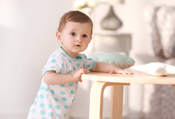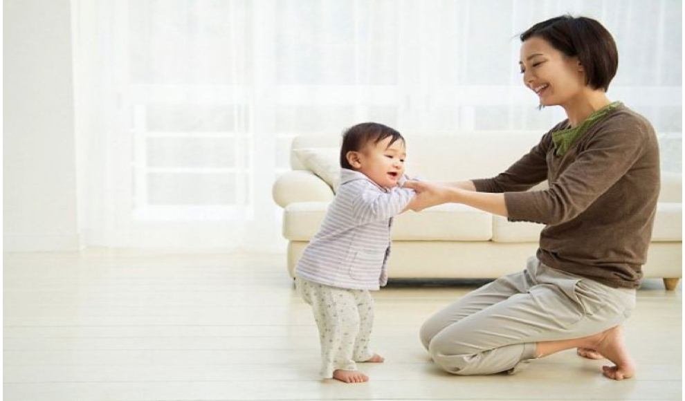 - Bước 1: Cho trẻ đứng ở cạnh một vật thể nào đó ngang với chiều cao cơ thể của trẻ để trẻ có thể bám vào một cách dễ dàng.