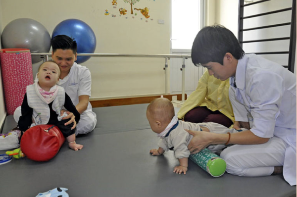 Trẻ chậm phát triển cần được tập vật lý trị liệu thường xuyên và đúng cách.